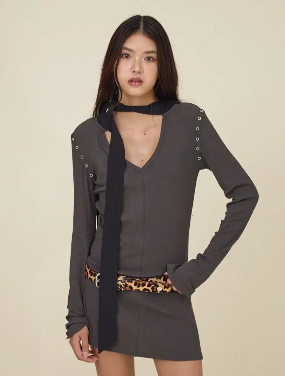 フードとアームホールのラインにアイレットのディテールをあしらったパーカードレスです。
