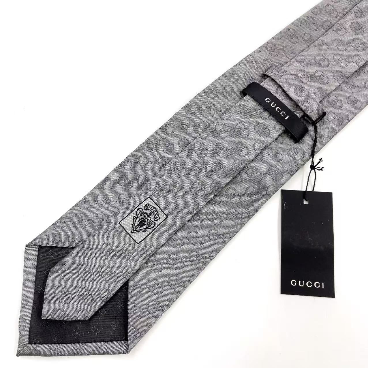 GUCCI GG総柄 シルク グレー ネクタイ