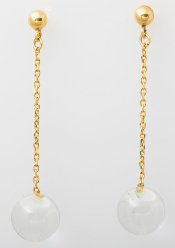 本商品は、#球状 の水晶が#イエロー #ゴールド (18金)の#チェーン に#垂れ下がる #デザイン のピアスです。