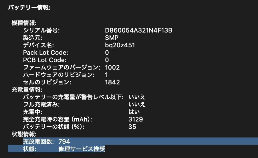 ・充放電回数:794回