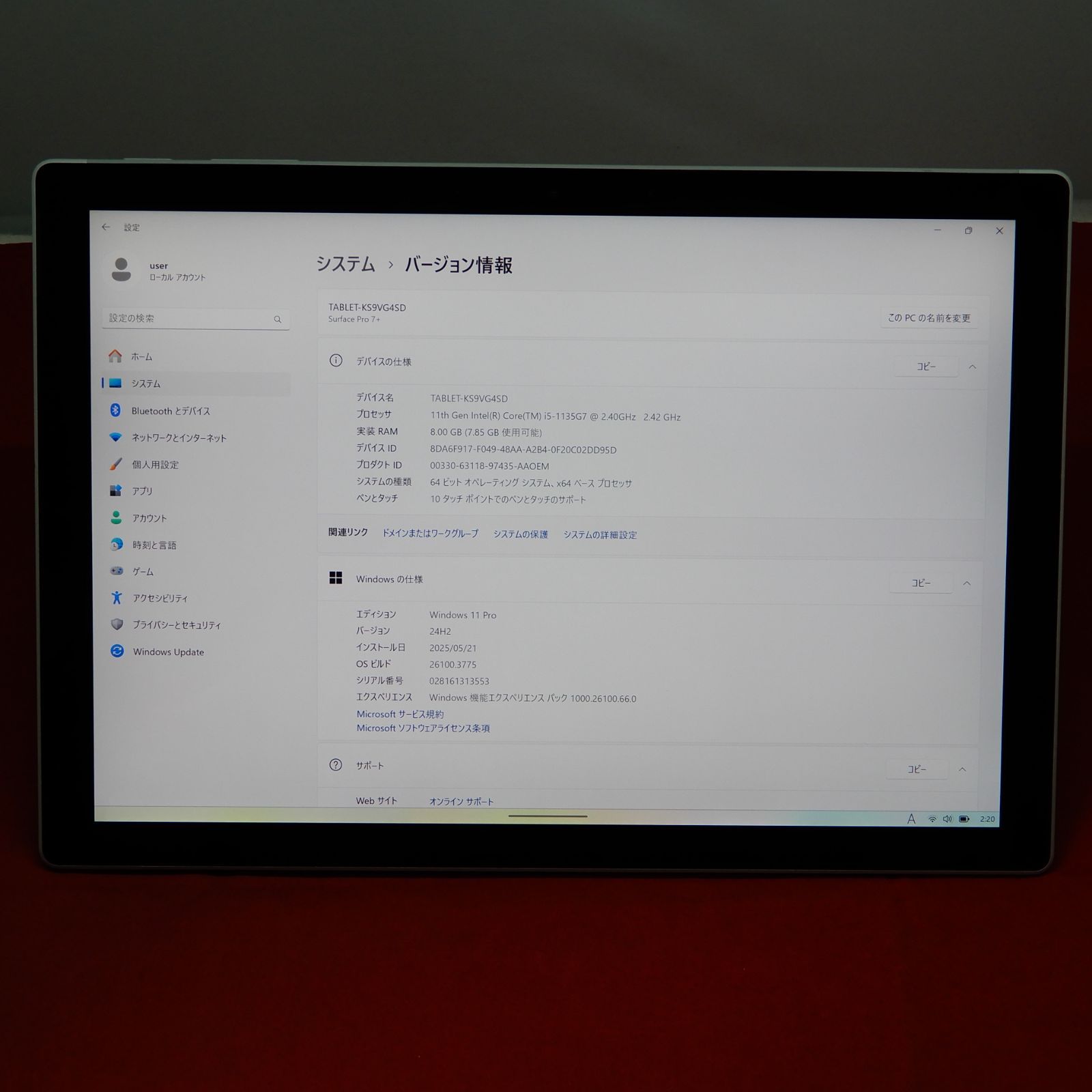 マイクロソフトのSurface Pro 7+ Windowsタブレットパソコンです。
