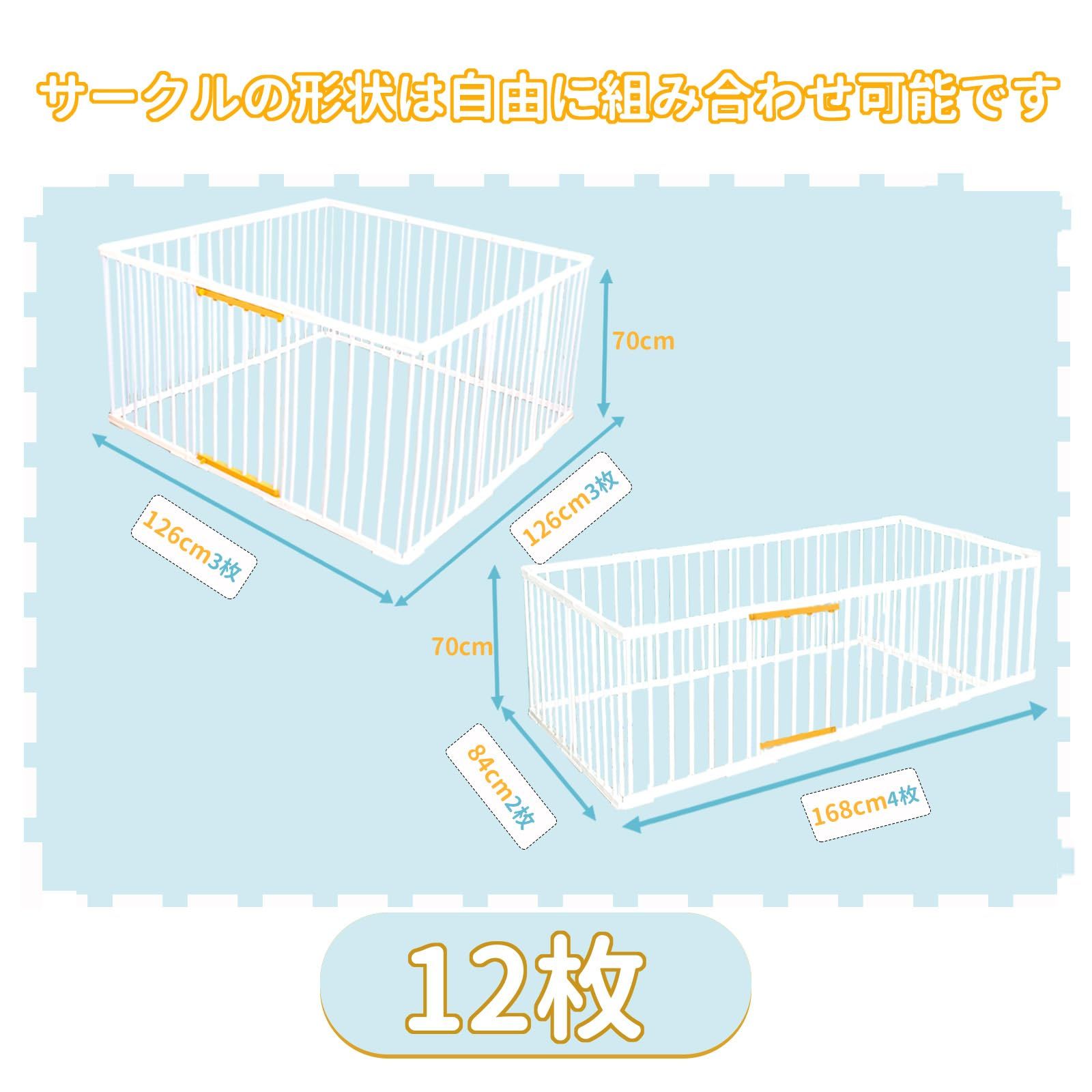 ユニークなデザイン:スペースに合わせてパネルを活かして、長方型、正方型、L字型などに変更できます。ペットに窮屈な思いをさせる事なく、日常のトイレ訓練やハウストレーニングに便利なペットサークルです。