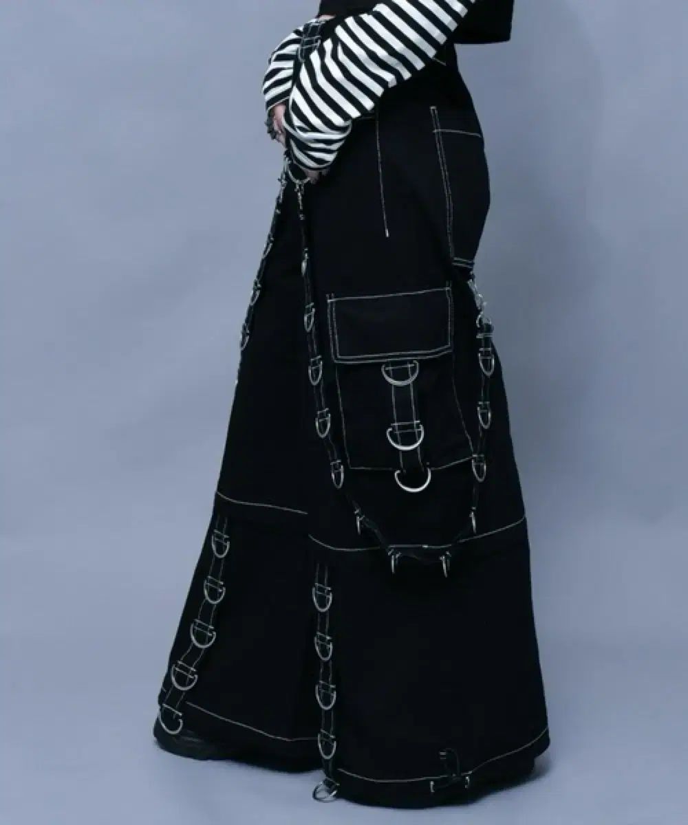 REFLEM 2WAYワイドカーゴパンツです。このブラックデニムパンツは、ユニークなリングのディテールが特徴です。