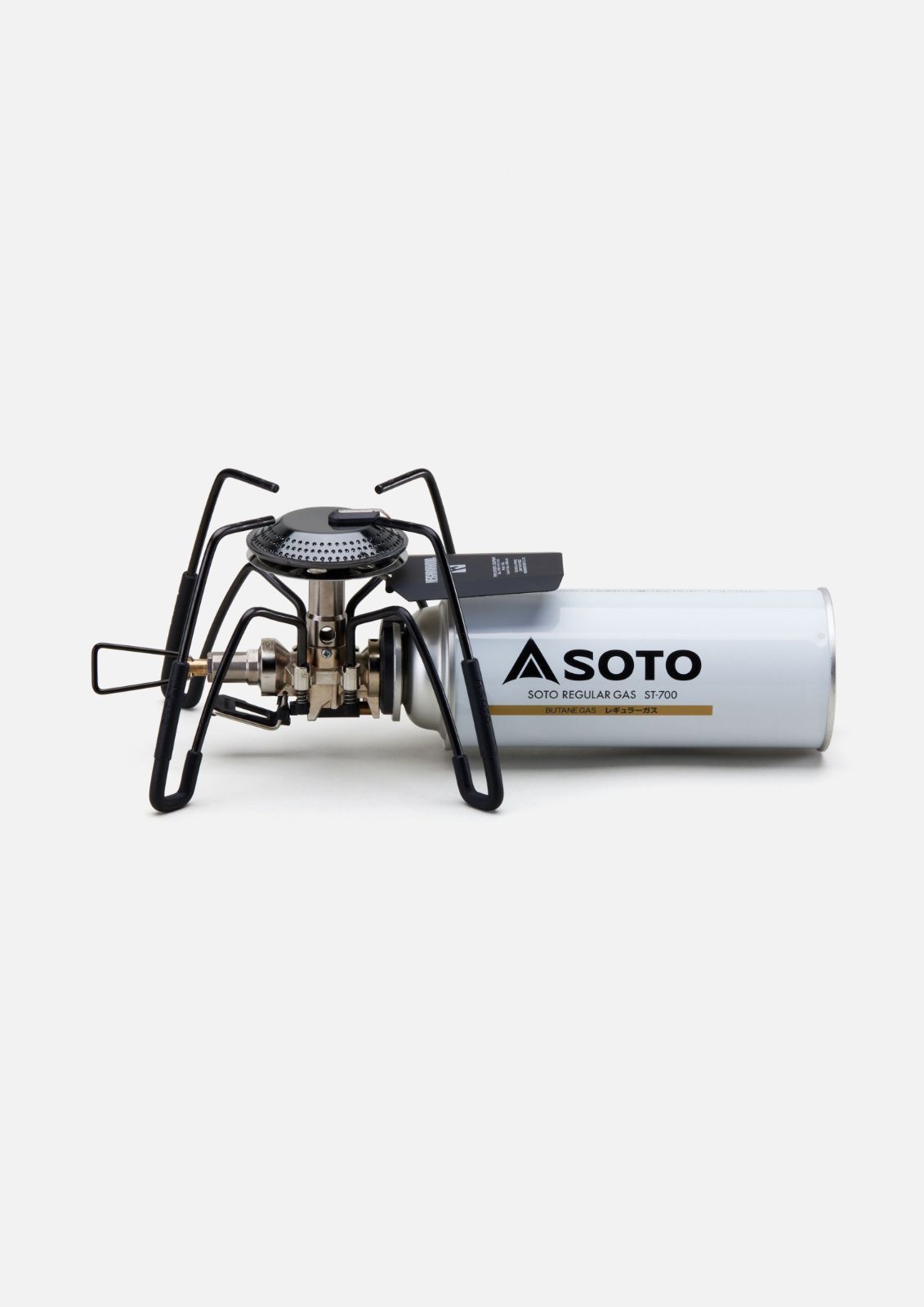 CB缶を使用するシングルバーナー レギュレーターストーブRange ST-340(発熱量2800kcal )を別注。ゴトク、バーナー部分をブラックに染め上げ、遮熱版にはオリジナルグラフィックをプリント。ゴトク部分に付けるアシストグリップは特別色のブラックを採用し、オリジナルの専用ストレージバッグを付属。SOTOとのコラボレーションモデル。