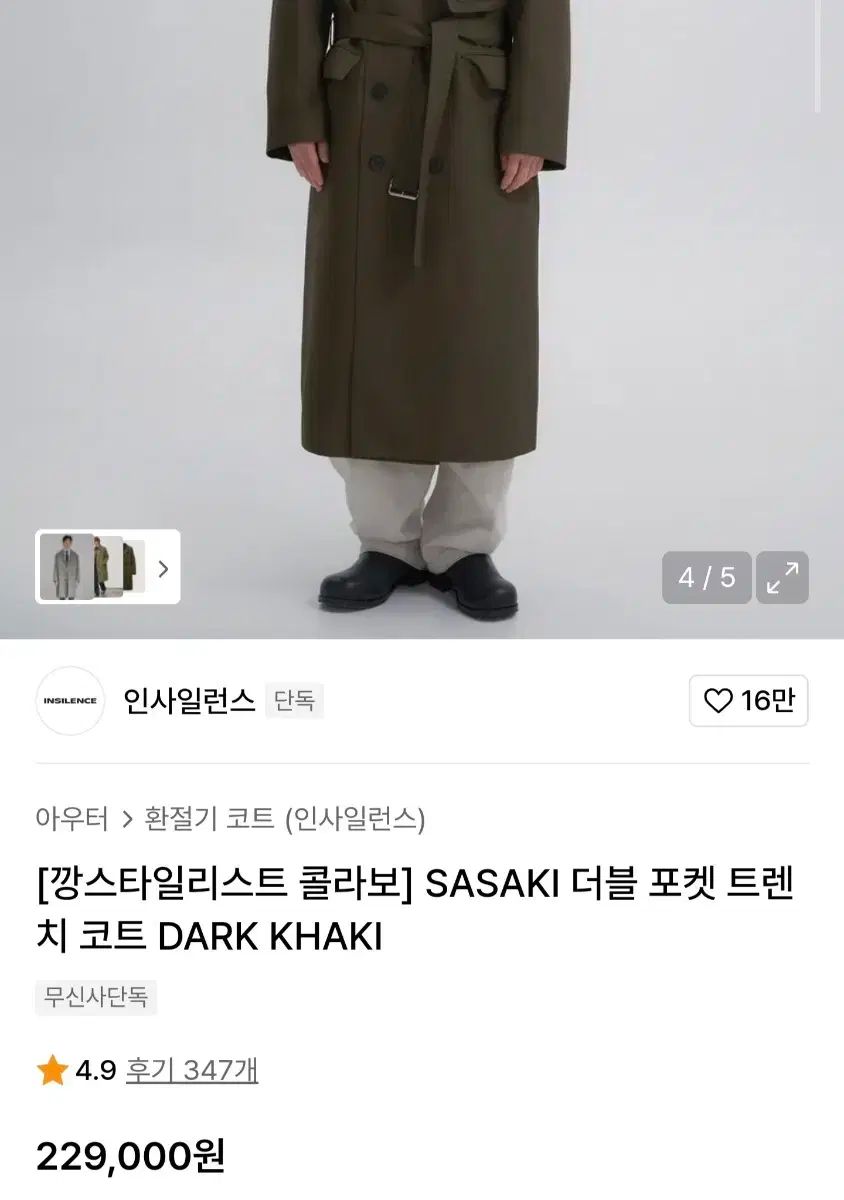 INSILENCE 日本 Sasaki 生地 で製作されたダブルポケット トレンチコート (カーキ) です。