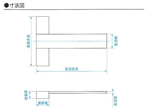 長片は底面の中心側面に切り込みをつけ、鋲止めされた台付スコヤです。