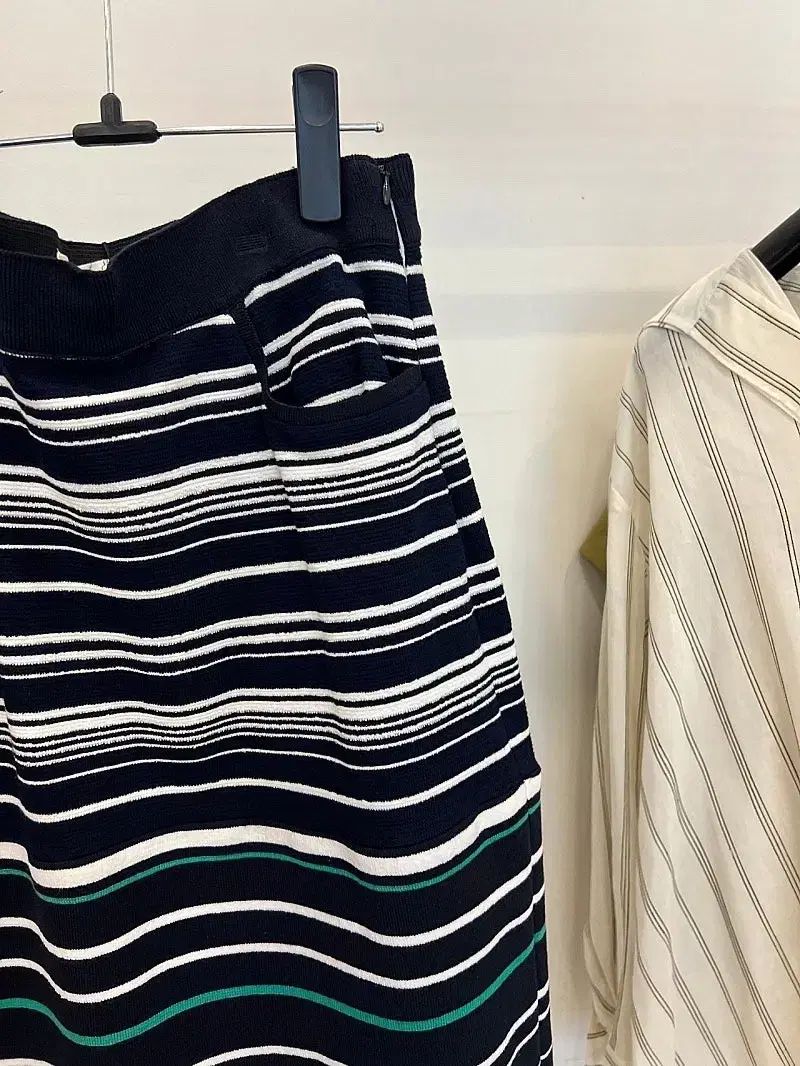 これは新品のハンソムラットビティニットスカートです。ネイビーカラーは白のストライプ柄です。ニット素材なので、着心地もいいです。ご不明な点がなければ、すぐに安心してお支払いいただけます!