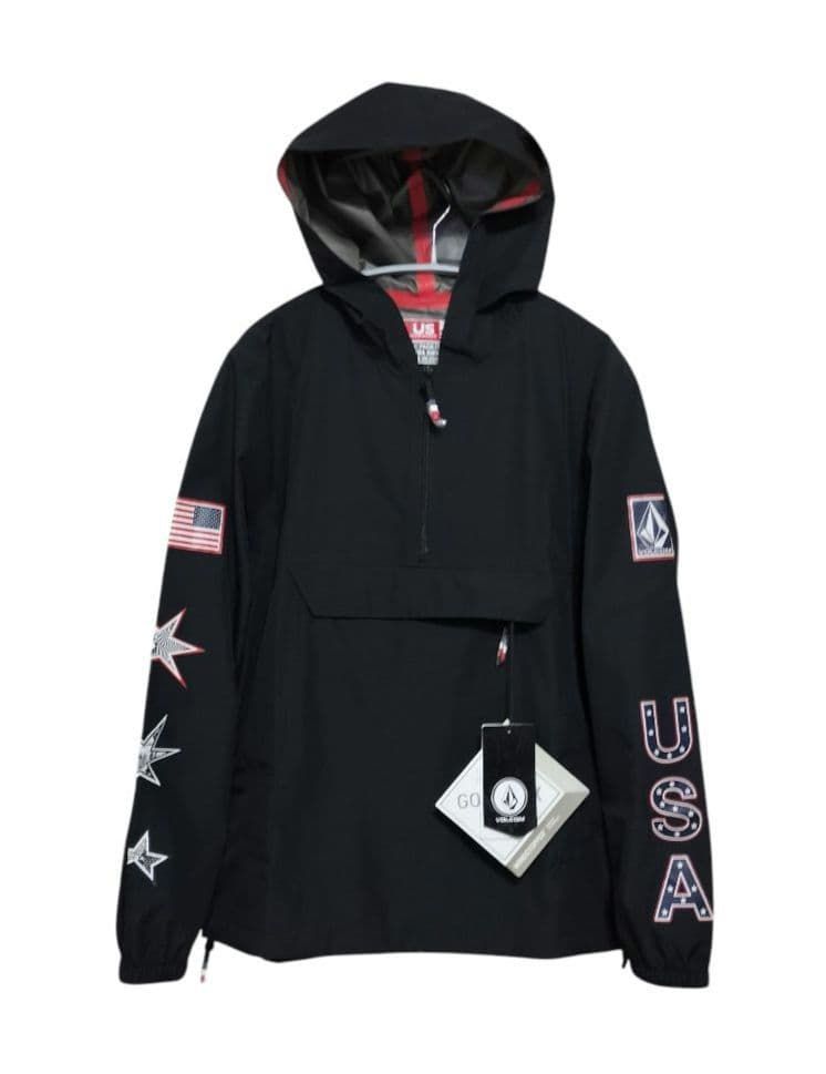 高い防風性・撥水性・透湿性を兼ね備えた「GORE-TEX INFINIUM™」素材を採用し、軽量ながらも高い耐候性を発揮。アノラックタイプのプルオーバーデザインで、スノーボードはもちろん、アウトドアやタウンユースにも活躍します。袖には「USA」ロゴと星条旗モチーフ、胸にはVOLCOMロゴパッチが施された限定デザイン。アメリカ代表チームのスピリットを感じられる特別モデルです。カラーは黒でかっこいいです♪♪