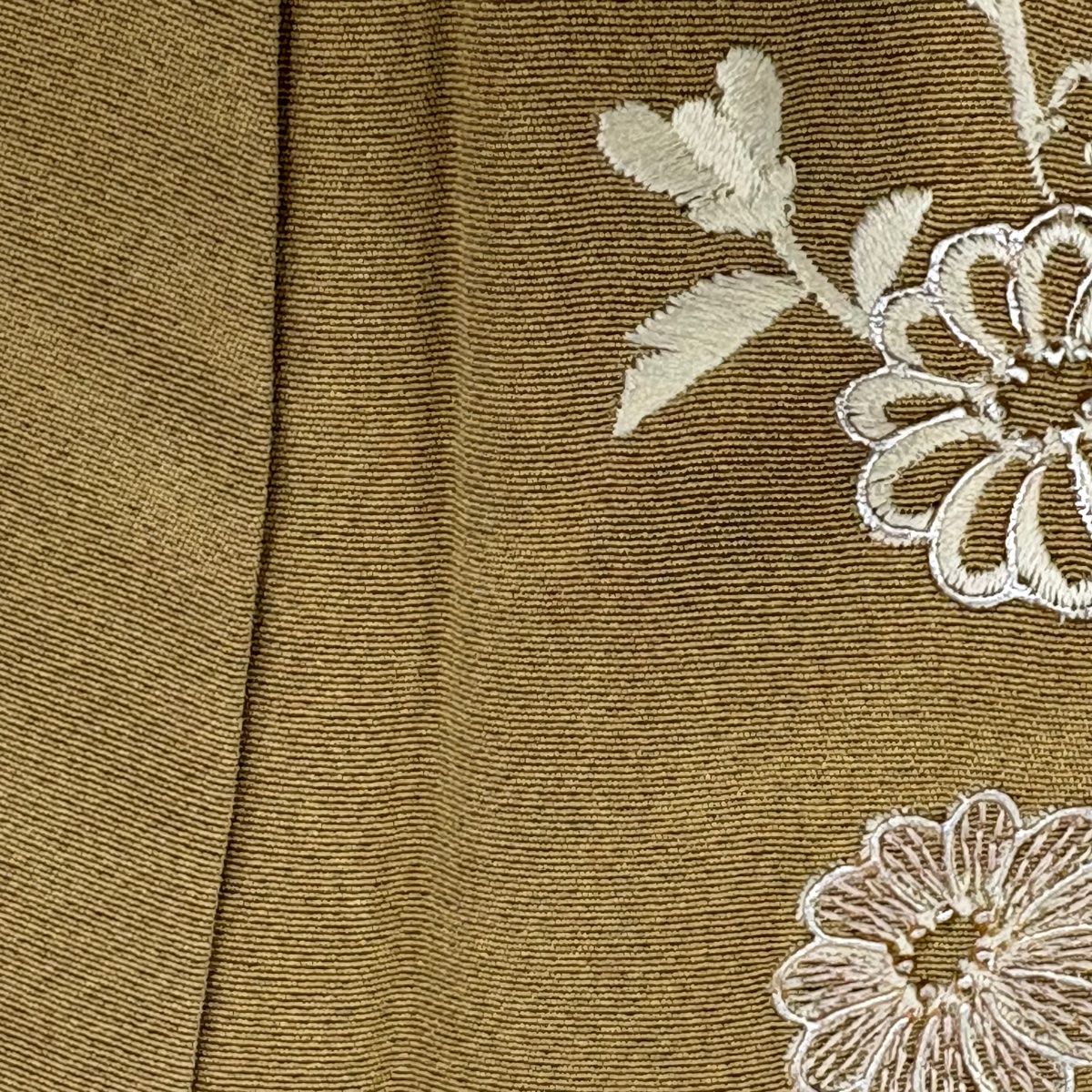 付下げ 身丈159 cm 裄丈64 M 袷 草花 螺鈿 刺繍 薄黄土色 正絹 秀品