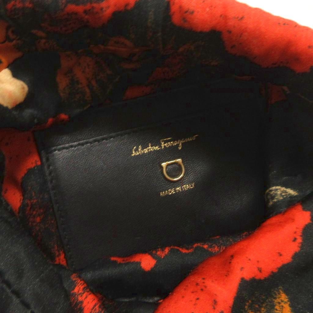 サルヴァトーレフェラガモ Salvatore Ferragamo フラワーケージポーチ 巾着 スナップ付き 付替 花がら 黒 ブラック