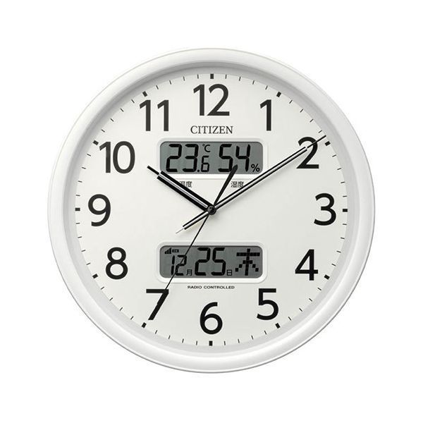 ●外寸:径350×厚56mm●重量:1.3kg●使用電池:単3形アルカリ乾電池2本(別売)(電池寿命=約1年)●材質:プラスチック枠●木ねじ1本付●電波時計●スイープセコンド,温湿度表示,カレンダー表示