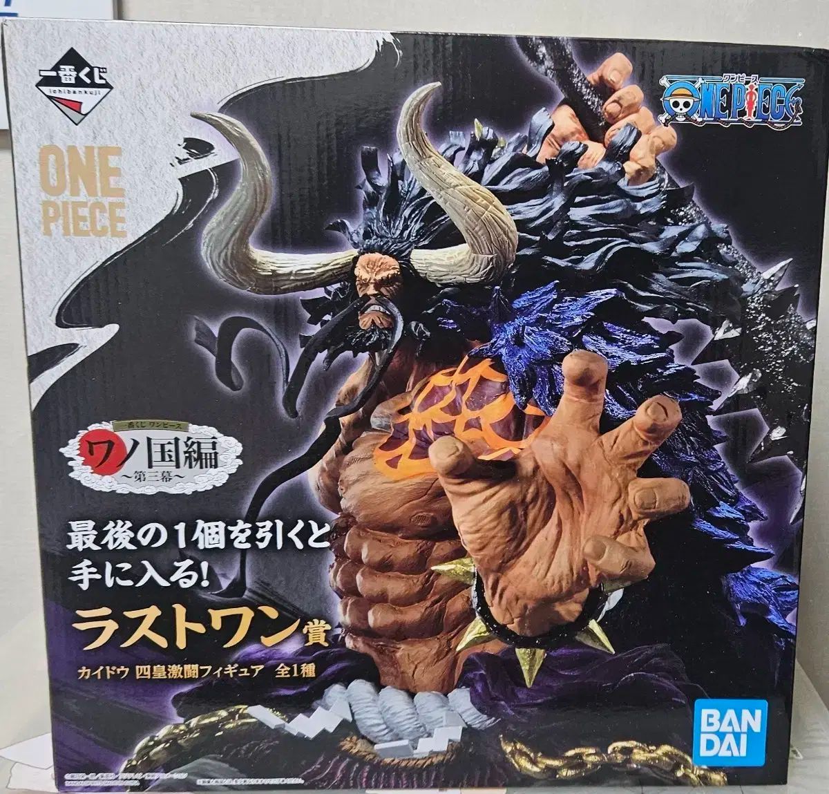 未開封 一番くじ ONE PIECE ワノ国編 ラストワン賞 カイドウ フィギュアです。ラストワン賞として、一番くじの最後の1つを引くことで入手できるレアなフィギュアです。ボックスの状態は写真の通りです。特にコメントがなければ、そのまま安全決済をお願いします!