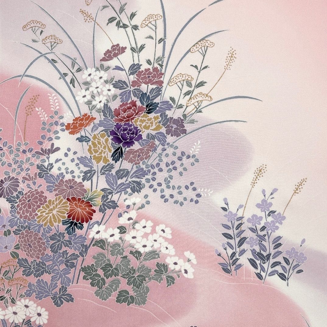 付け下げ 反物 1本 正絹 着物お 同梱 リメイク用 花柄 ピンク 和裁 11013