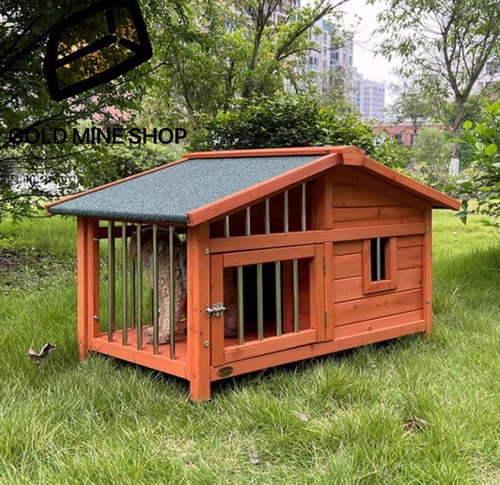 屋外用犬小屋の無垢材構造はステンレススチール製の金具で補強されており、丈夫で長持ちする保護を提供します。