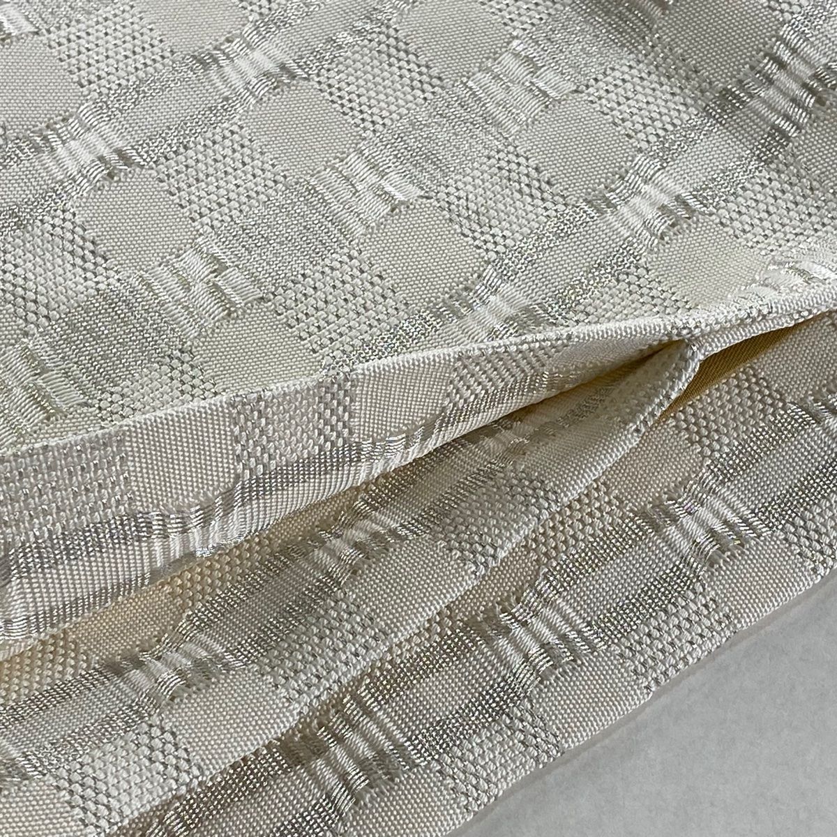 開き名古屋帯 龍村美術織物 比翼仕立て 格子 銀糸 白 正絹