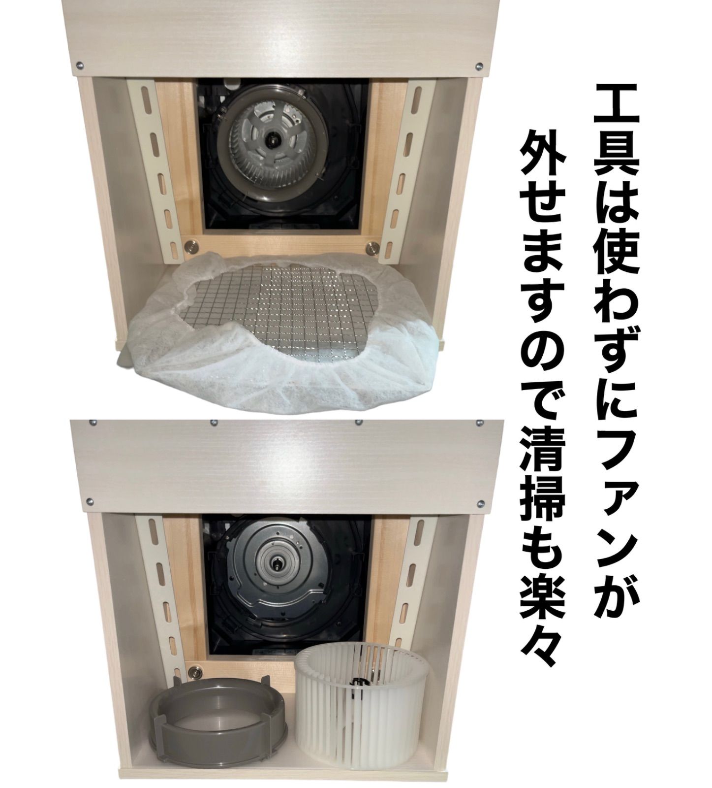 換気扇のファンも手で簡単に外せますので清掃も楽に行えます