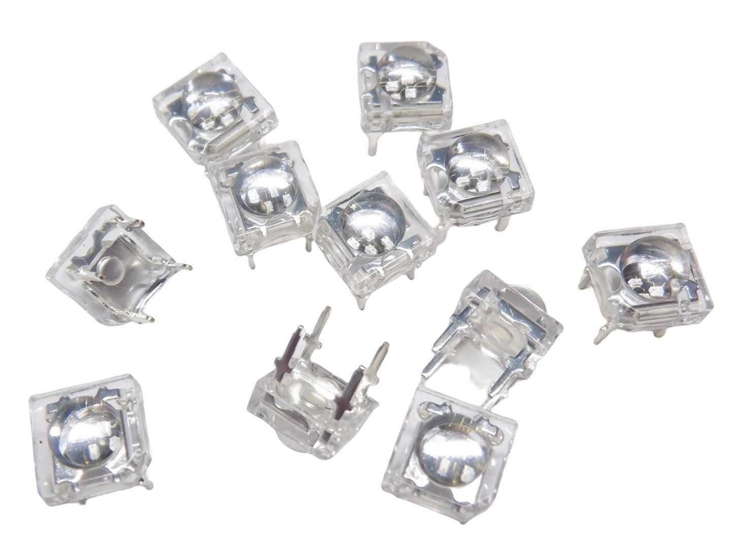 外形は7.7mm*7.7mm、レンズ部はφ5.0mmです。波長:470nm IV:4000mcd 半減角:90° VF:2.8V-3.0V IF:80mA(4chips)