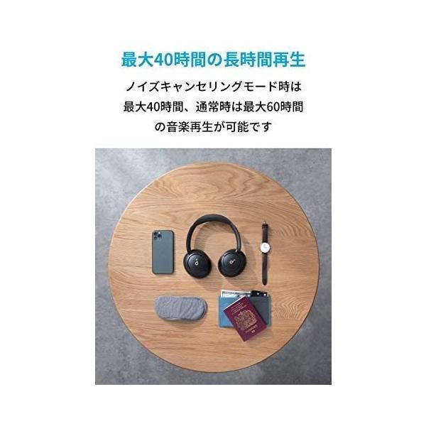 |Soundcore|Hear It. Feel It.|心地良く、等身大に音楽を楽しみたいあなたへ贈る、Ankerのオーディオブランド|Soundcore Life Q30|モード切替可能なアクティブノイズキャンセリング搭載。快適な使い心地を求めたワイヤレスヘッドホン。|製品の仕様|再生可能時間:最大40時間(ノイズキャンセリングモード) / 最大60時間(通常)|充電時間:約2時間|充電端子:USB Type-C|重さ:約260g|通信方式:Bluetooth 5.0|Bluetoothプロファイル:AVRCP、A2DP、HFP、HSP|対応コーデック:AAC / SBC|周波数応答:20Hz-20KHz(Bluetooth接続時)、16Hz-40KHz(AUXケーブル接続時)|注意|ご使用の際はヘッドホンの左右を確認し、正しく装着してください。|ハイレゾ対応はAUXケーブル接続時のみ。|AUXケーブル接続時はヘッドホン側のマイク、ボタン操作は使用できません。|製品・同梱物の仕様およびパッケージのデザインは予告なく変更されることがあります。|「家電批評」2021年5月号Bestbuy受賞|受賞日:2021年4月2日発表|実施団体:株式会社 晋遊舎|専用アプリ連携により、周囲の環境に応じて選べる3つのノイズキャンセリングモード|交通機関モード|交通機関モードは、乗り物のエンジン音や路面騒音などの低周波ノイズを最小限に抑えます。|屋外モード|屋外モードは、自動車の走行音や風の音など外出先での周囲のノイズを低減します。|屋内モード|屋内モードは、カフェなどの室内空間での周囲の声や足音などの中周波ノイズを低減します。|外音取り込みモード|ヘッドホンのパネル(右耳)を1秒間タッチして外音取り込みモードに切り替えると、会話や公共施設のアナウンス等の外音を取り込むことができます。|アプリで手軽なカスタマイズ|Soundcoreアプリを使用することで、ノイズキャンセリングモードの選択やイコライザー設定をカスタマイズすることができます。睡眠モードでは、リラックス効果のあるヒーリングサウンドを再生することができ、長時間の移動や休憩時に便利です。|ハンズフリー通話|がかかってきた時も内蔵マイクでハンズフリー通話が可能です。通話応答もヘッドホンのボタン操作によって可能です。|Bluetooth接続時のみ|快適なフィット感|形状記憶イヤーカップとヘッドバンドにより長時間装着しても快適さを保ちます。イヤーカップは15°まで角度を調節可能で、頭の形に合わせて自然にフィットします。|マルチポイント対応|Soundcore Life Q30は同時に2台の機器と接続することが可能です。また、Bluetooth接続を都度切り替える必要がなく、スマホで音楽、PCでWEB会議などの使い分けをスムーズに行うことができます。|一度に再生できるのはどちらか1台の機器のみとなります。|NFCペアリング|お使いのBluetooth機器がNFCに対応している場合は、本製品とのペアリングをより簡単に行うことができます。|お使いのBluetooth機器でNFC機能を有効にしてください。|ヘッドホンのパネル(右耳)にBluetooth機器を接触させてください。|付属のハードトラベルケースについて|ハードトラベルケースの形状を変更いたしました。(変更前:四角形 / 変更後:丸形)|2021年1月18日以降にされた製品は、丸形のハードトラベルケースが付属いたします。|ヘッドホン本体の変更はございません。|