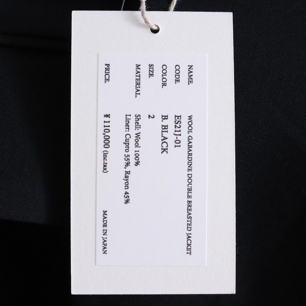 未使用 ESSAY Wool Double Breasted Jacket サイズ2 ブラック ES21J-01 エッセイ ウールダブルテーラードジャケット ブレスト