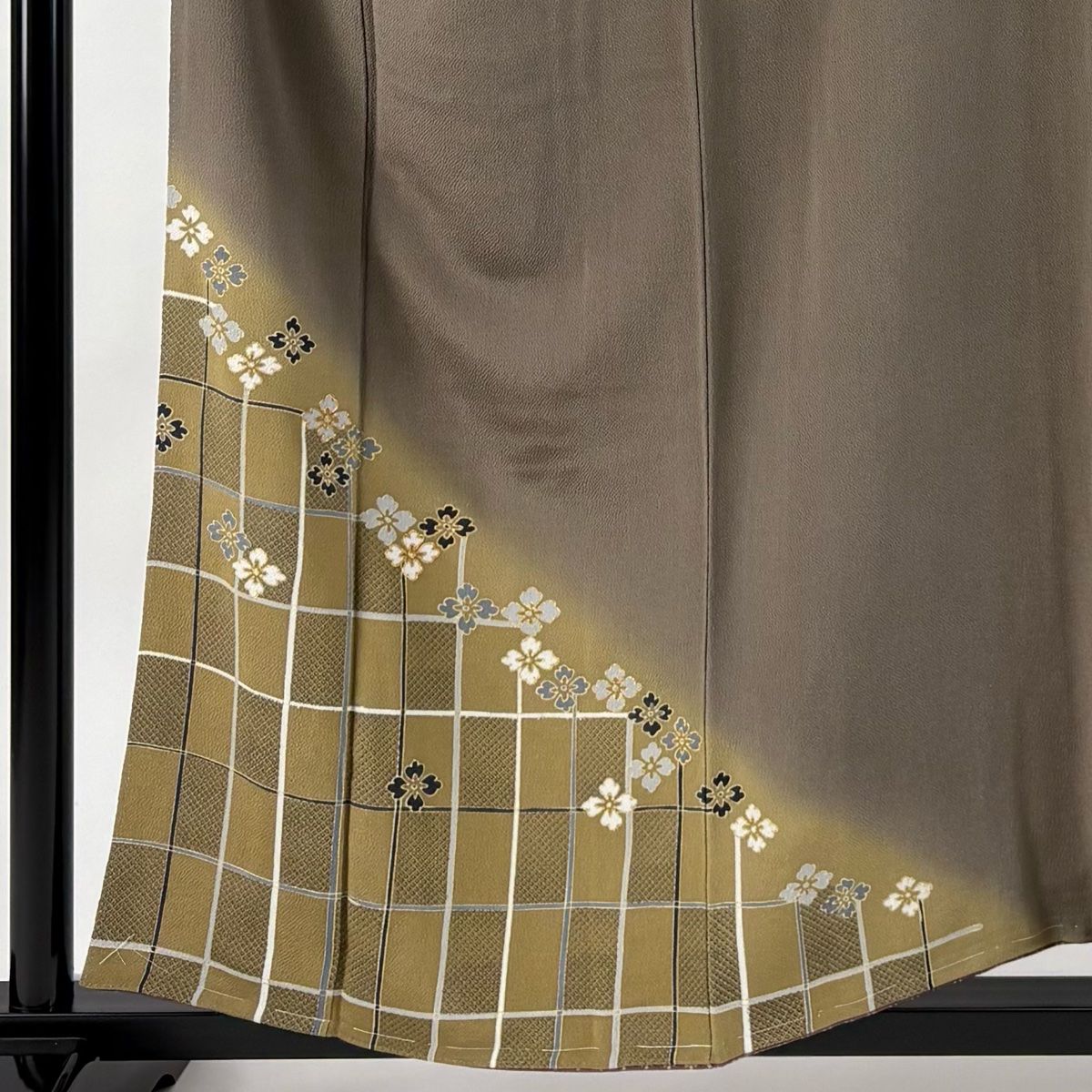 付下げ 身丈157.5 cm 裄丈63 S 袷 花菱 格子 金糸 金彩 灰茶 正絹 秀品