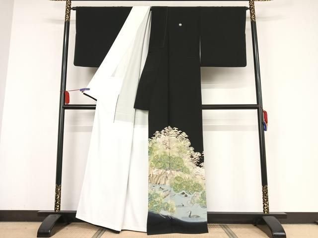 平和屋着物 本加賀友禅作家 松田准一 黒留袖 若松風景花鳥文 暈し染め 正絹 np
