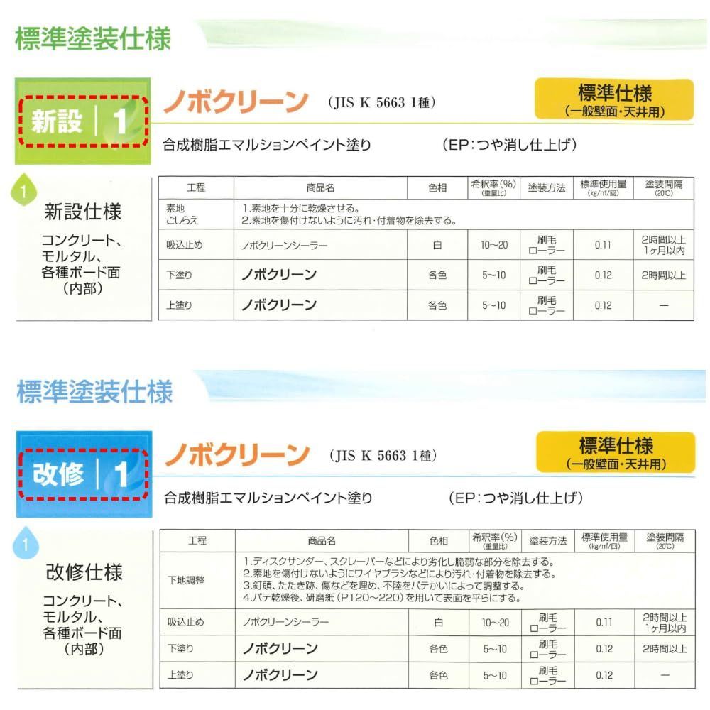 塗布量:1回/120g/㎡(ローラー、刷毛にて塗布。水道水5~10%希釈) 計、2回塗り。