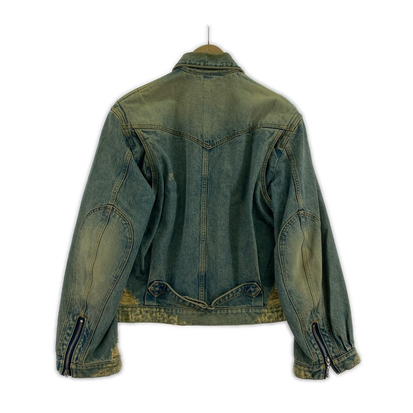 ZIP-UP DENIM DAMAGED JACKET 2 ブルー