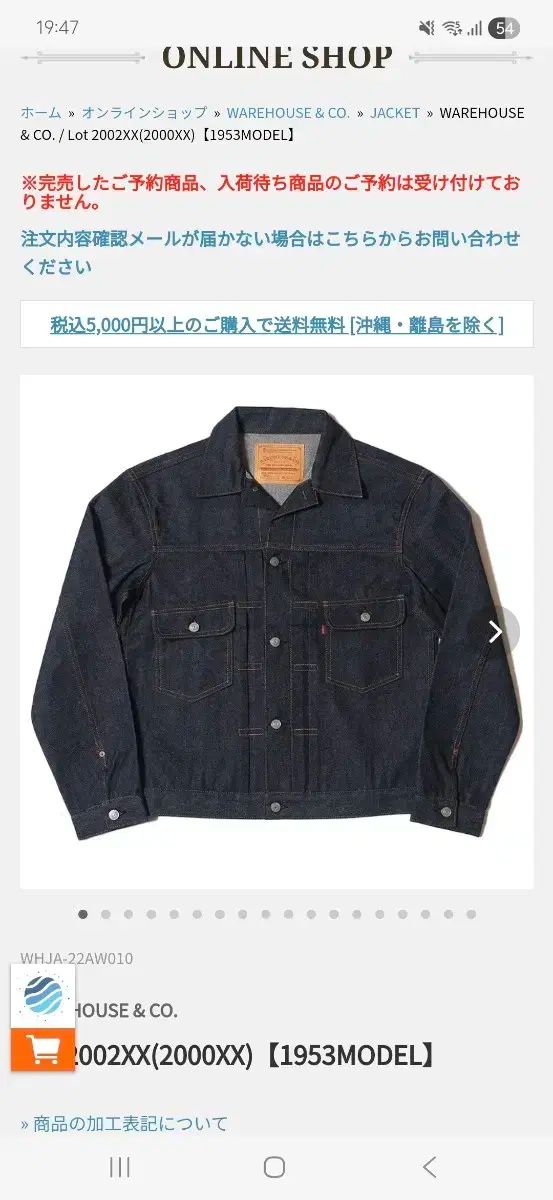 ウェアハウスDSB 2002XX (1953) ワンウォッシュは40サイズの新製品を販売しています。サイズ間違ってるから売ってます笑