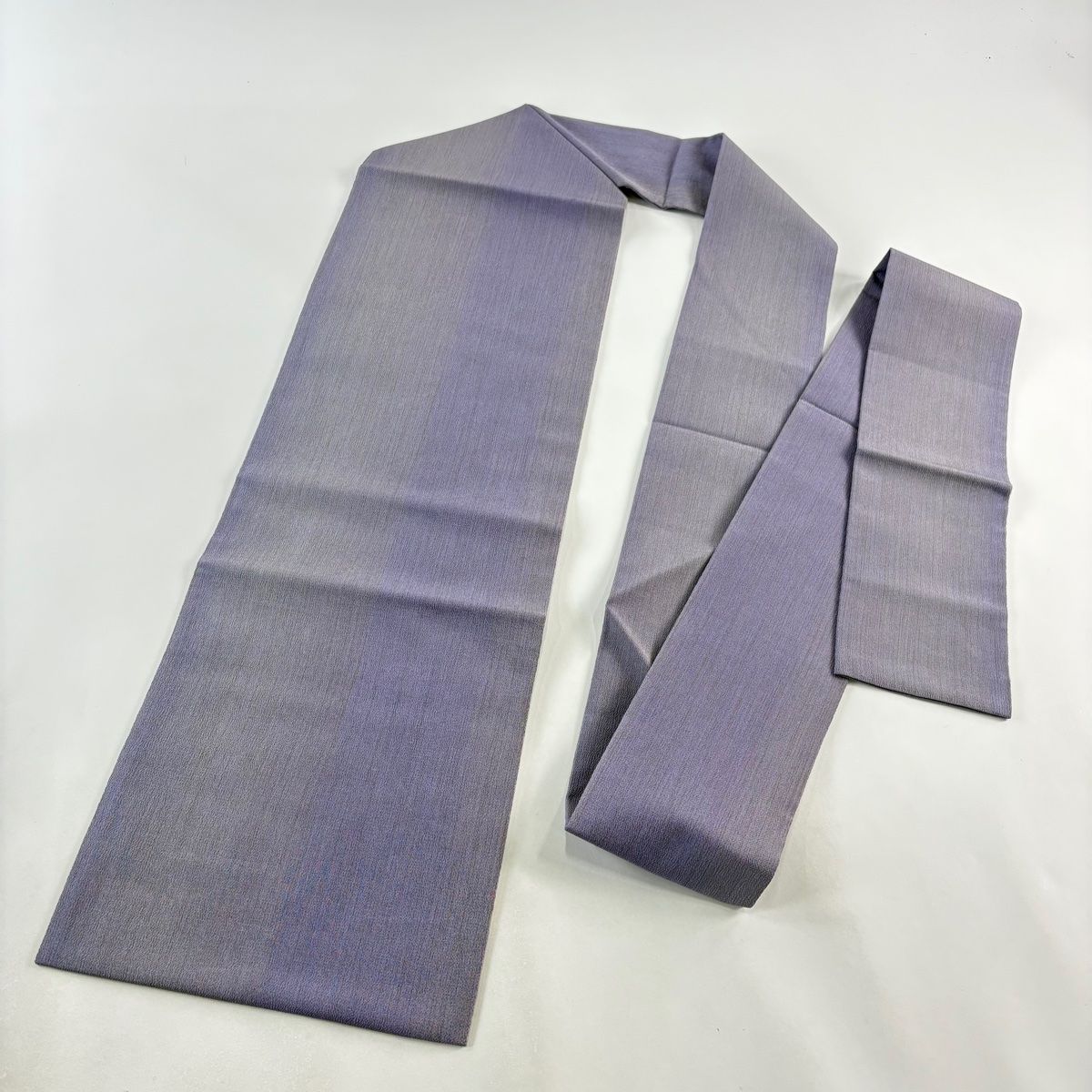 名古屋帯 秀品 縞 ぼかし ちりめん 灰紫 正絹