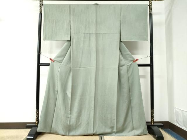 平和屋着物 上質な色無地 霞地紋 山葵色 正絹 yc