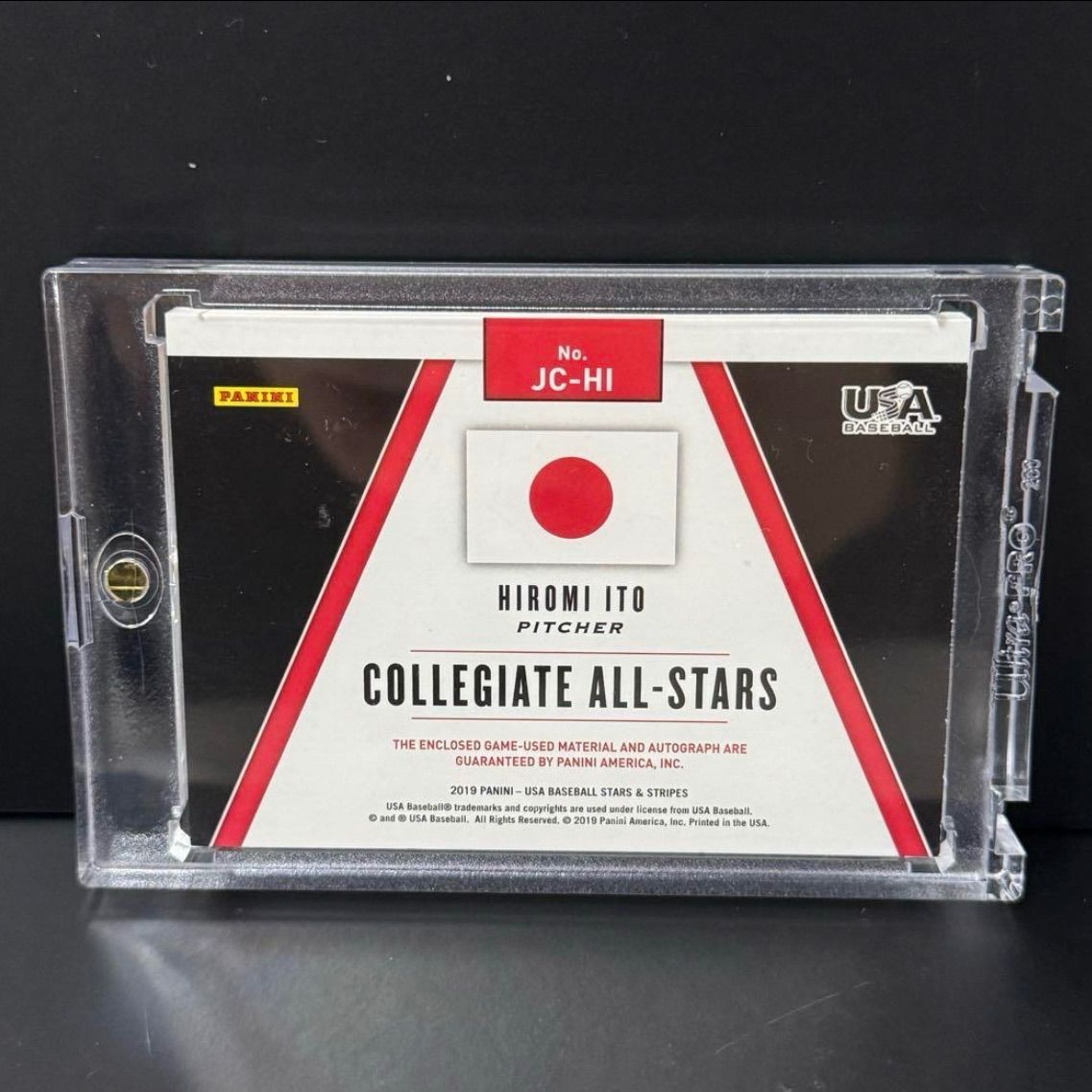 2019年日米大学野球選手権で実際に使用された日本代表ユニフォームのパッチ付きで、世界限定7枚という貴重なアイテムです。