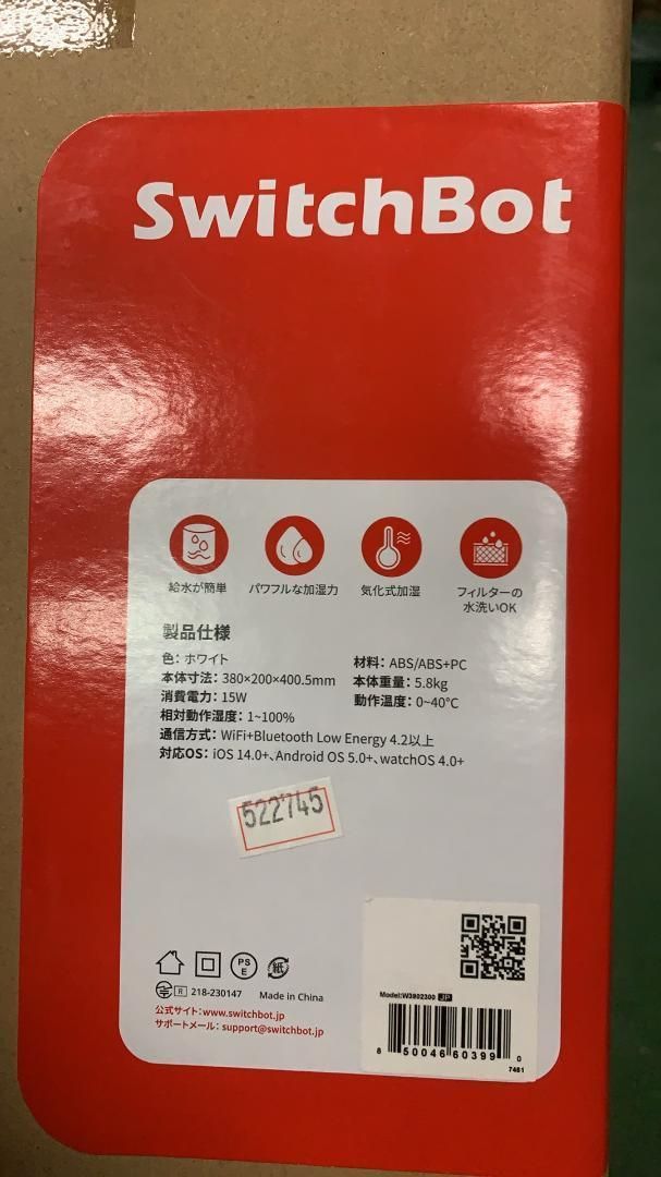 522745 SwitchBot 加湿器 気化式 4.5 L