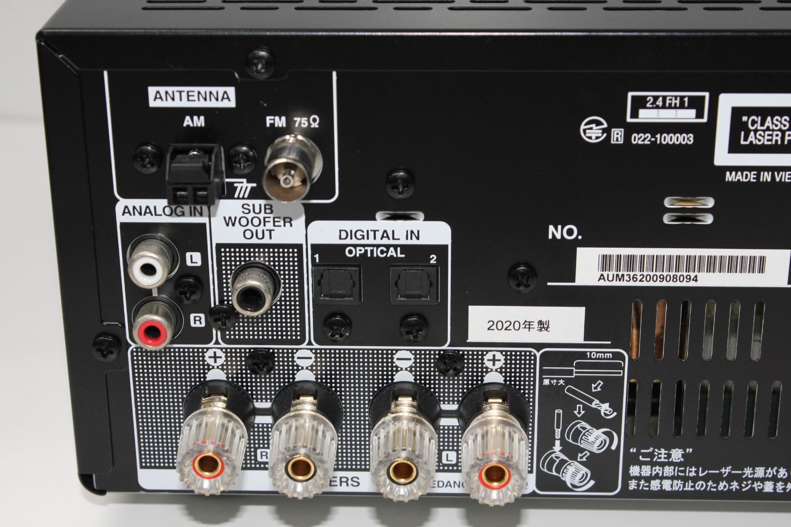 本体、リモコン、サードパーティ製スピーカー、スピーカーケーブル、AM/FMアンテナ、箱(画像1枚目に写っているものすべて)