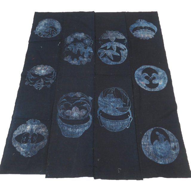 藍染 筒描き 筒描 筒書き つつがき 鶴 亀 蝶 草花 古裂 時代布 襤褸 古布 アンティーク リメイク きもの北條 A 1051-9