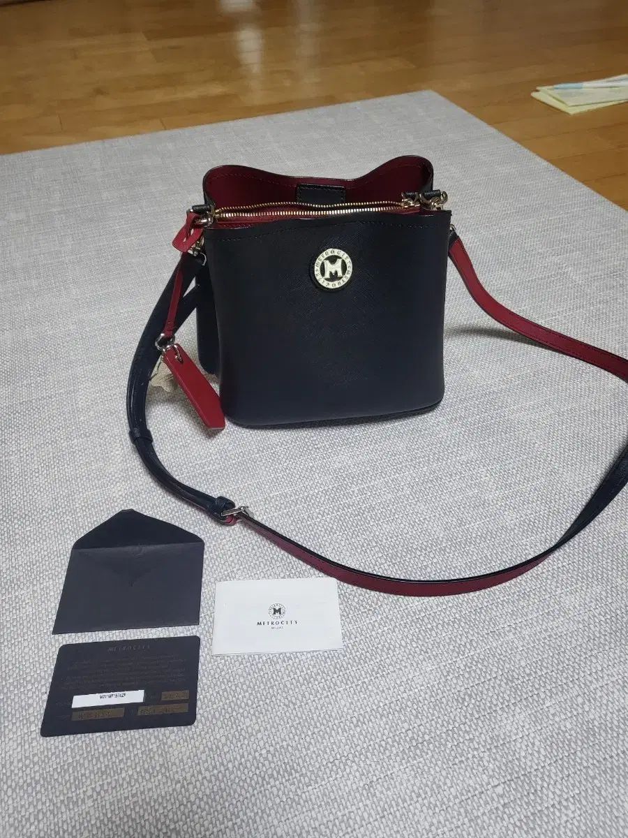 これはメトロシティのミニクロスボディバッグです。ブラックカラーに赤のインテリアがアクセントになっています。品質証明書とダストバッグが付属しています。ご不明な点がなければ、すぐに安心してお支払いいただけます!