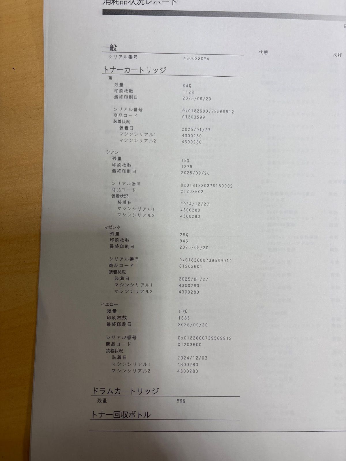 トナー残量は、写真をご確認ください。