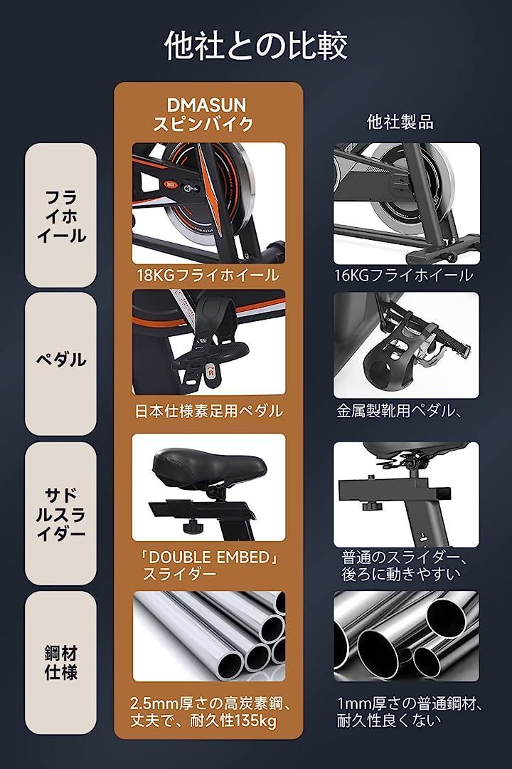 DMASUNスピンバイクは埋め込み式「DOUBLE EMBED」設計スライダー搭載しており、セーフレベルが30%アップされました。