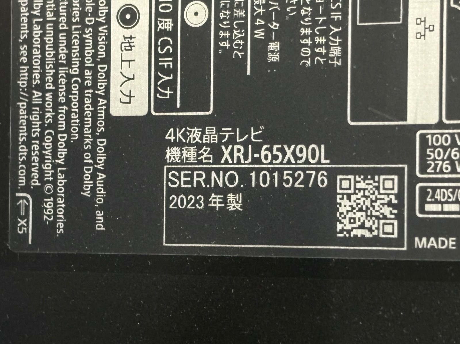 ☆GL220【山口県下松市より】4K 液晶テレビ ソニー XRJ-65X90L 2023年製 になります。