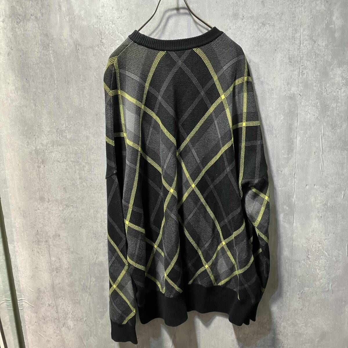 19 ss JOHN LAWRENCE SULLIVAN CHECKED OVERSIZED KNIT SWEATER サイズM 柄 ジョンローレンスサリバン