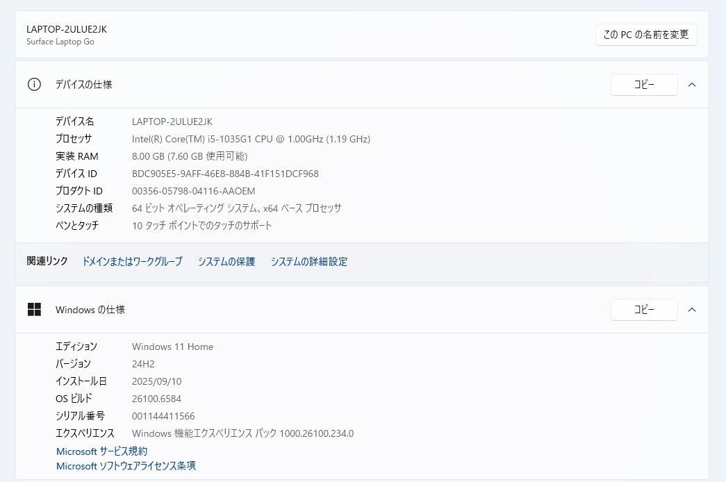 Surface Laptop Go(第1世代)intel Core i5/256GB/8GB ⑤