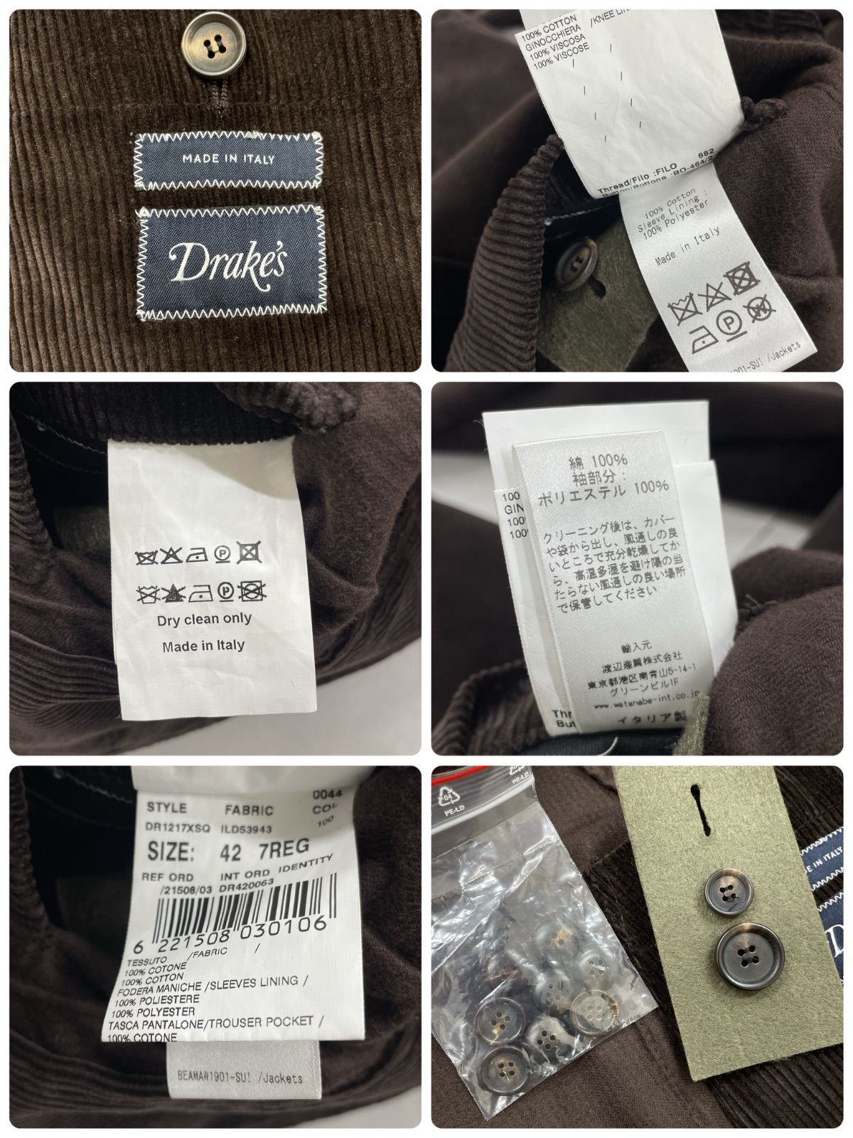 Drake s ドレイクス スーツ セットアップ コーデュロイ ジャケット パンツ コットン ブラウン イタリア製 メンズ 42