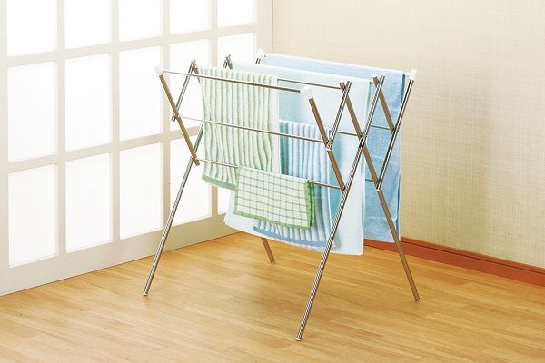 使いやすい、折りたたみタイプのステンレス製室内干し。軽量なので移動・収納がラク。物干しバーは9本で収納力抜群。