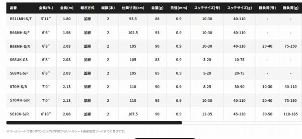 S70M-S/Rはオモリグ対応調子「R(レギュラーテーパー)」。[ハイレスポンスソリッド]を採用。長ハリス時にもアタリを鋭敏に捉えるためのセッティング。