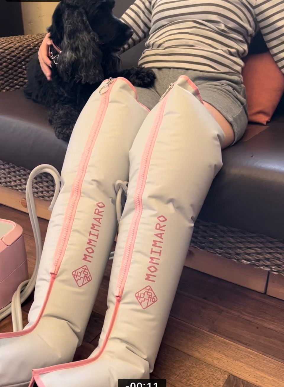 本格的な エアーマッサージャーのもみまろです。脚全体を包み込み つま先から脚の付け根方向に徐々に加圧し 最後は全体を同時加圧した後に除圧します。
