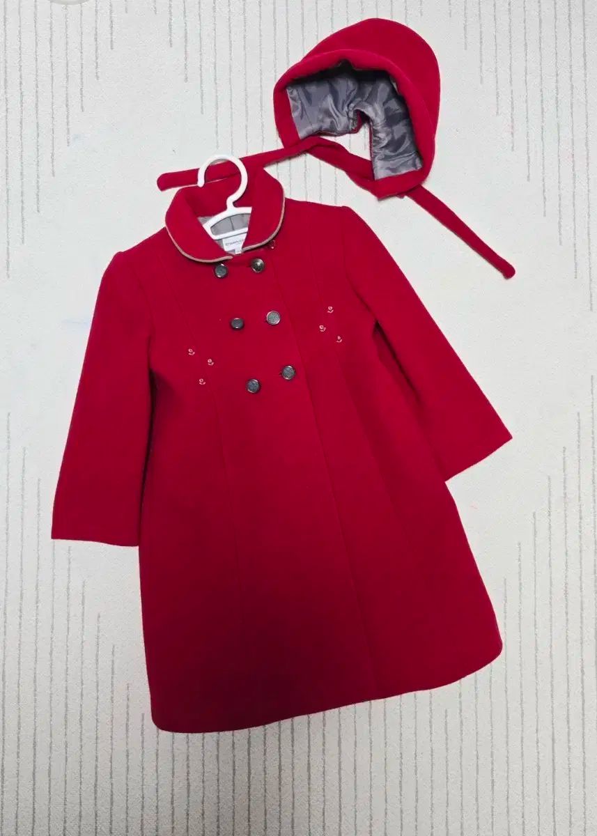 ウール80%ブレンドのコートで、帽子とセットなので