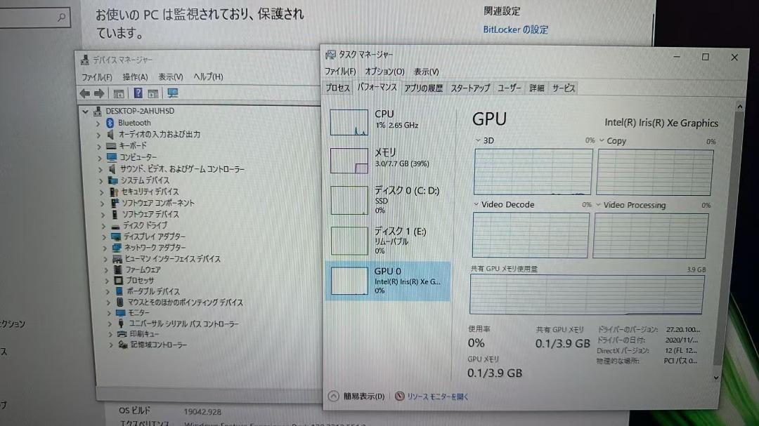 グラフィックインテル Iris Xe グラフィックス(メイン・プロセッサーに内蔵)、ビデオメモリー:最大4092MB(メイン・メモリーと共用)