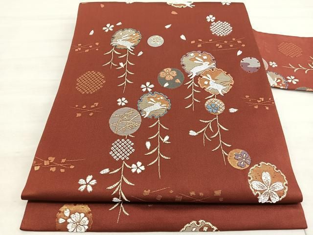 平和屋着物 九寸名古屋帯 唐織 雪輪兎花文 金糸 正絹 hv
