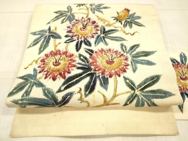 平和屋着物 染彩芸術の巨匠 皆川月華 九寸名古屋帯 手描き 枝花文 正絹 cm