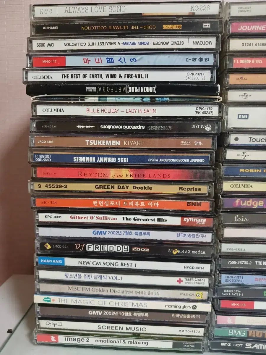 記憶に残るポップソングのCDが一まとめ売り販売されています。写真のように90枚強のCDです