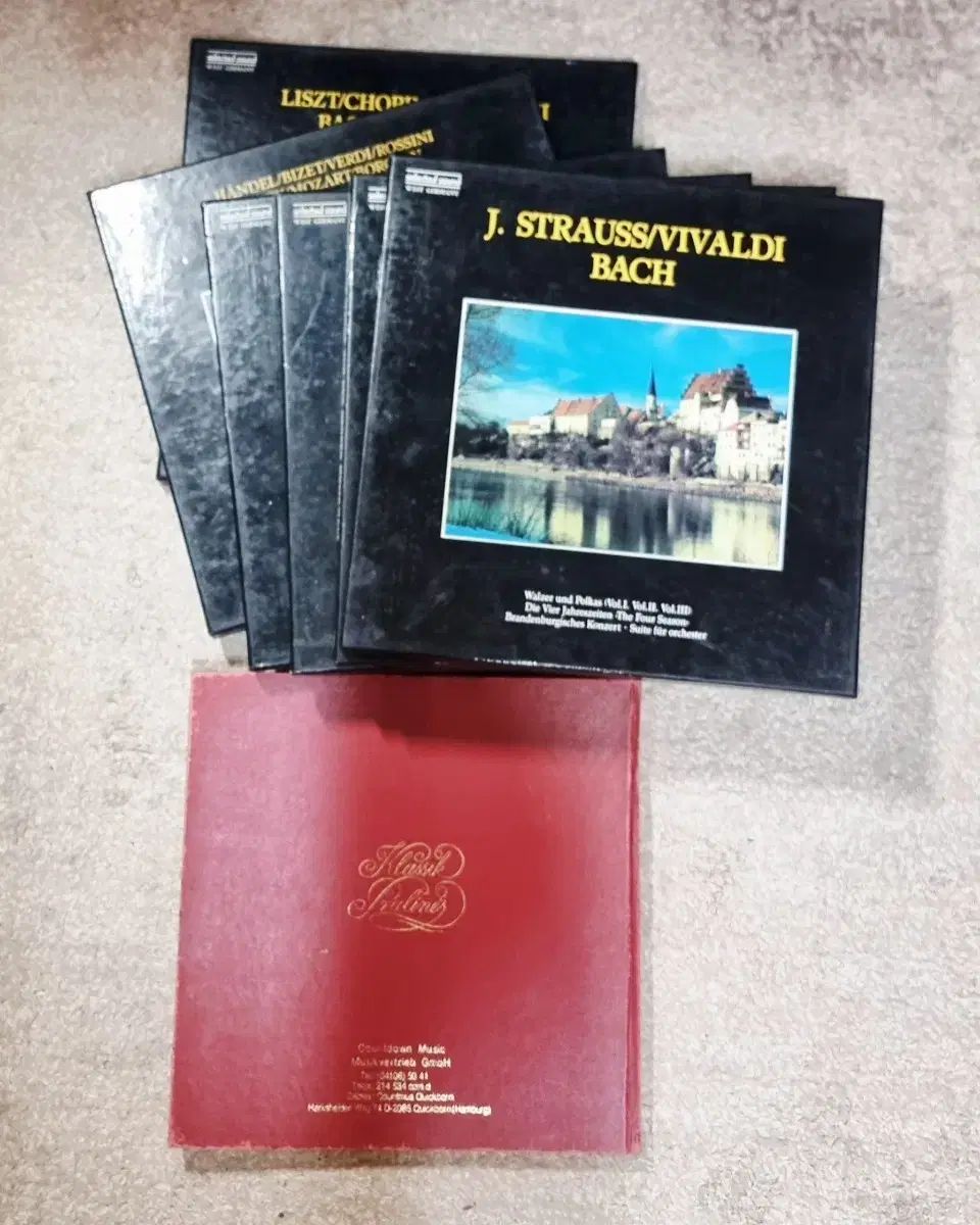 'DIE KLASSISCHE WERKE VON' クラシック音楽LPボックスセットです。5x6 全30枚のLPで構成されており、ヘンデル、グリーグ、メンデルスゾーン、J.シュトラウス、ヴィヴァルディ、バッハなど様々な作曲家たちの作品を収録しています。(上製本解説書含む)